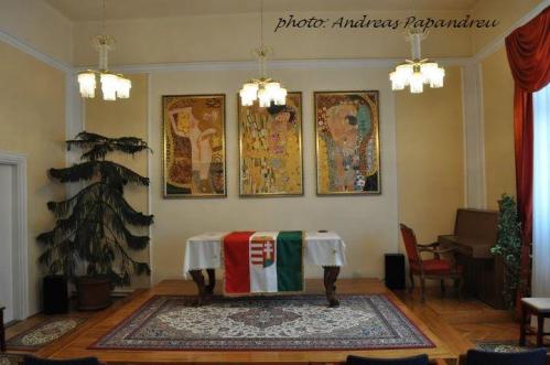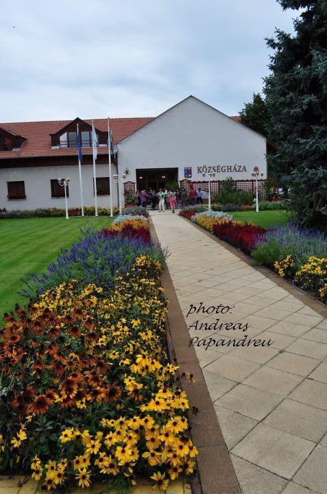 Természetesen megint egy magyar kocsi vezetett fel bennünket, nem kellett idegeskedni, GPS-t és térképet nézni. Útközben meséltem a görög társaságnak erről arról, gulyásról, szalámiról és egyéb finomságokról:) A faluba kissé megkésve érkeztünk, utána meg folymatosan hajtottam megint őket, de így van ez, ha kevés időre megy az ember és sokat akar azalatt tenni. A társaság nagy része egész jól bírta a hajtást, csak az öregúr tánctanárunk háborodott fel egy adott pillanatban, hogy túl gyors neki a ritmus. De hogy a kronológiai sorrendet megtartsam, megérkezésünk után egyenesen bementünk a Községházára, ahol Huszár Sándor alpolgármester kedves, rövid köszöntővel fogadott, melyet ott helyben lefordítottam és tolmácsoltam a csoportnak. Ezek után máris kezdődött az evés ivás, nehogy kiszáradjunk:), kaptunk üdítőket, vizet, kávét.