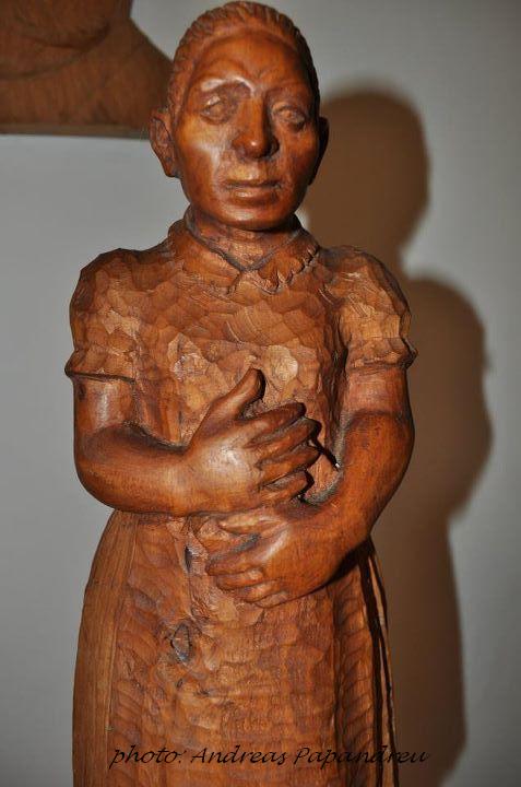 A szobor után már nagyon kíváncsiak voltunk magára a művészre, akinek a háza-táján berendezett kiállítása volt a következő célpont. Ahogy a busszal a régi tanyasi iskolához közeledtünk, megcsodálhattuk a homokos földet, mely annyira jellemző a pusztavidékre és a görögöknek teljesen szokatlan, de bevallom, nekem is. Kerestük a folyót, melynek medréhez tartozna a homok, de mondták nekünk, hogy nincsen víz, ez jellegzetes talaj. Sikerült a homokos út ellenére a busszal sikeresen eljutni a fafaragó művész úr házához, ahol nagy szeretettel fogadtak bennünket.