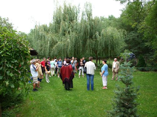 | A fafaragó művész kérésére görög táncot roptunk saját énekünkre az udvaron. Az őzek nem jelentkeztek:) |