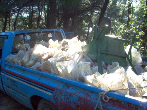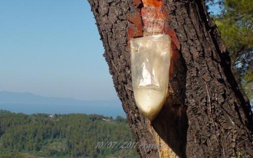 De egész Görögország területén nagyon sokan foglalkoznak gyantabegyűjtéssel. A megfelelő fa kiszemelése, a gyanta begyűjtése és szállítása nem egyszerű feladat. A pinaceae fajta összesen 90 fenyőfélét jelent. Ezekből 3 fa ad megfelelő gyantát: a pseudotsuga menziesii mely 600 m fölött található, a picea abies mely 700 m fölött, majd a sima pinea- vagy allepói fenyő, mely általában 600 m magasságig található meg. Ez utóbbiban bővelkedik észak Evia és Görögország „zöld”-nek nevezett szigetei, mint Korfu, Skopelos és Thassos (..és mások).