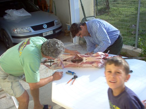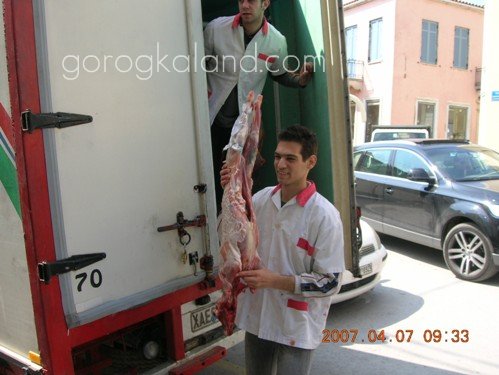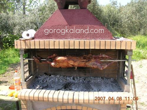 A KOKORETSZI maga is nyárson készül, ezt is még szombaton elő kell készíteni a vasárnapi sütéshez. Kockákra felvágott és sóval, borssal, oreganóval ízesített máj, tüdő darabok egymás mellé, szorosan nyársra húzva, szorosan áttekerve tisztára mosott béllel. Ezt is a szabadban, tűz illetve szén fölött sütik meg.