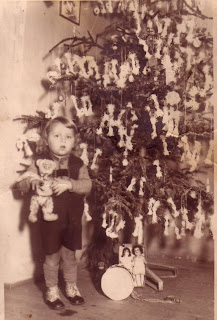 Végezetül álljon itt egy kép Nagypapámról, aki kb. négyévesen egy dobot, két babát és egy plüssmackót kapott karácsonyra. Botondról nem készült összkép a karácsonyfával és az ajándékaival, de
