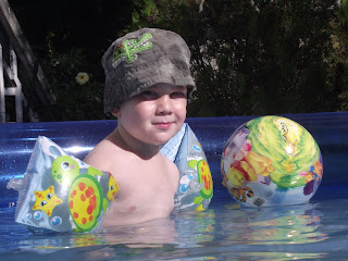 Kicsit sokat medencéztünk-tavaztunk itt-ott a napokban, ma éppen Budakalászon töltöttünk egy szuper napot, délután az apja is utánunk jött, ő is ül a medencében, viccből fejbedobja Botondot a gumilabdával, aki erre felhördül: