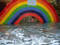 Tegnap itt jártunk és bár a pokoli délelőttünk után nagyon izgultam, hogy értékelni fogja-e Bobókám az apukája szülinapi ajándékát képező vízibirodalmat, mondhatom minden percét élvezte. Tette ezt annak ellenére, hogy miután kiléptünk az öltözőből, pont egy széles, de meredek csúszda tárult elénk, gondoltam, jó ötlet ott lecsúszni vele az ölemben, ehhez képest állati gyorsan csúsztunk, a végén pedig hatalmasat csobbantunk és merültünk a víz alá. Egy szörnyű pillanatig úgy állt a dolog, hogy ő többet víz közelébe nem megy, de szerencsére a nagymedence hamar feledtette bánatát és onnantól megint nem lehetett kiverni a vízből. Azért mondom, hogy megint, mert mikor nyáron Velencén voltunk, óriási meglepetést szerzett nekünk Bobó a víz-imádatával és bátorságával. Ez most megismétlődött.