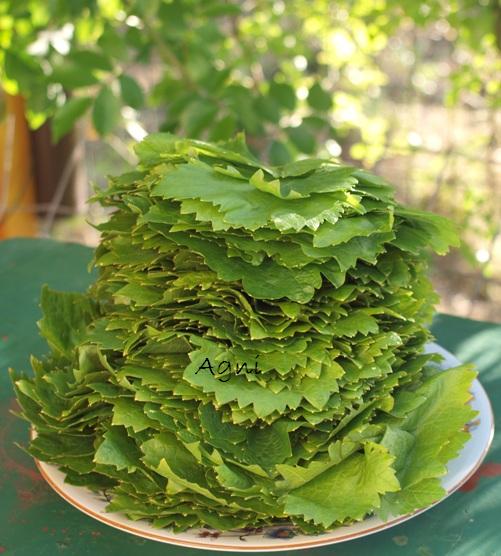 A májusi időszakban kibújnak a szőlőlevelek és olyan nagy sebességgel nőnek és fejlődnek, hogy meg kell tisztítani a tőkéket a nagyobb levelektől és helyet kell hagyni a hajtásoknak, úgy, hogy levegőzzenek eleget. Körülbelül ez az oka annak, hogy májusban mindig rengeteg szőlőlevél kerül feldolgozásra. Tavaly addig tartogattam őket, amíg szégyen szemre egy csomót végül ki kellett dobnom..de mentségemre szóljon, hogy tavaly sokkal kevesebb időm volt a háztartásra, mint az idén.