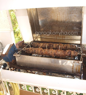 Az első balkonos képen látszik a balkon végében lévő kokoretsi sütő, és így sültek benne a finomságok.
