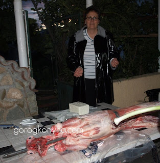 Az idén abban egyeztünk meg a barátainkkal, fele felében vásárolunk egy bárányt a hentesüktől, akiben ők feltétel nélkül megbíznak és ahonnan 30 éve vásárolnak. Aztán úgy egyeztünk, azt megsütjük, majd mindenki a maga feléből megmaradt részt megtartja magának és elraktározzuk – hogy hogyan, arról majd egy másik bejegyzésben. Végül úgy sikerült, hogy a bárányon kívül kaptunk még két egész „szikotaria„-t, vagyis belsőséget. A „szikotaria” a bárány összes belsőségének a gyűjtőneve, úgy van kiemelve az állatból, ahogy benne van, vagyis egymáshoz vannak kötve: szív, tüdő, máj, belek és a fehér zsírcsomók, valamint a zsírfátyol. Összesen az egész bárány 13 kiló volt és 124 euróba került, a két plusz belsőségcsomaggal együtt 150 euró jutott a két családra.