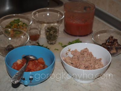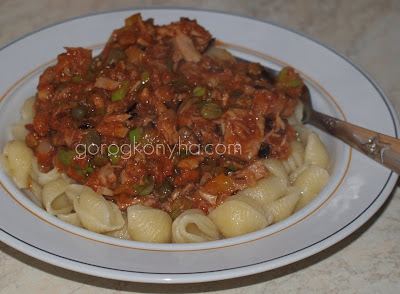 Az egyik finom konzervhalas étkem egy relatíve egyszerű tésztára való szósz, amit a TV-ben láttam ahogy Loukakos séf készített. (aki tud görögül menjen keresse meg a videót az Alpha TV-nél, Menegaki műsorában). Rögtön el is készítettem és bekerült a kedvencek közé!