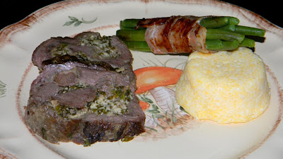 Báránytekercs medvehagymás juhtúróval töltve, tejes puliszkával