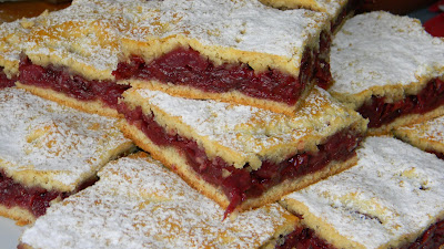 A tészta másik felét is kinyújtom és ráfektetem a meggy tetejére. Egy tojás sárgájával lekenem és villával megszurkálom. Előmelegített sütőbe teszem és 190 fokon, 25-30 perc alatt készre sütöm.
